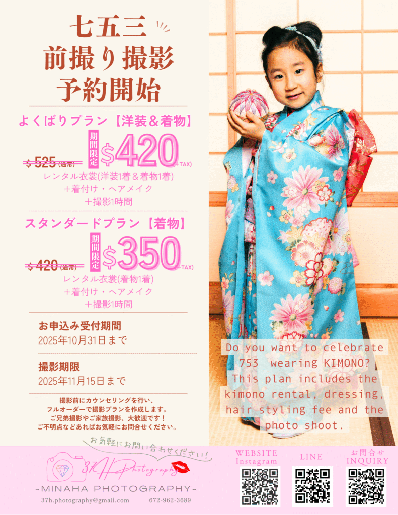 さて、本日より 七五三早撮りキャンペーン2025の撮影予約受付を開始致します!