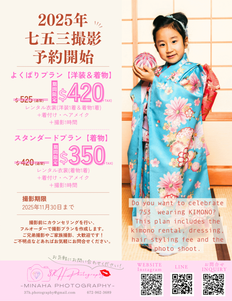 9月よりご予約を開始した、 七五三早撮りキャンペーン2025ですが